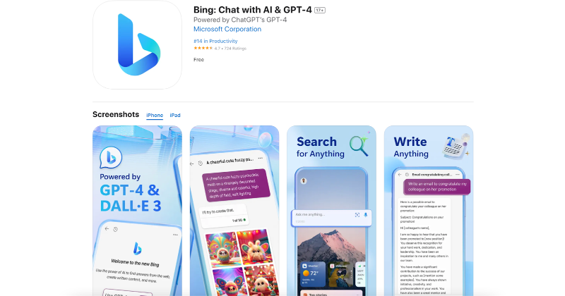 GPT-4 Powered Writing Assistant: The Bing app is a great writing assistant for all purposes thanks to its usage of ChatGPT-4.