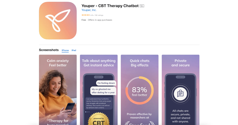 Youper is one of the best AI apps for iPhone that is developed with evidence-based interventions backed by research from Stanford University, Youper is clinically proven to be effective in reducing symptoms of anxiety and depression. The app combines psychology and artificial intelligence to engage users in natural conversations, making it the most engaging mental health chatbot.