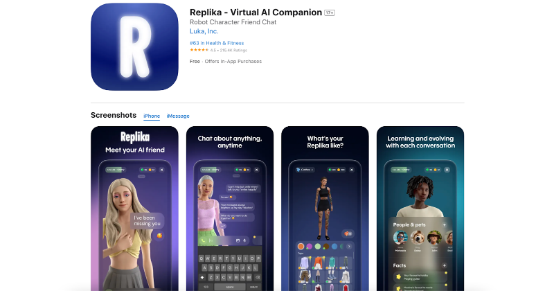 The app lets you customize your Replika's appearance with a 3D avatar, and as you chat, it develops its own unique personality and memories alongside you.