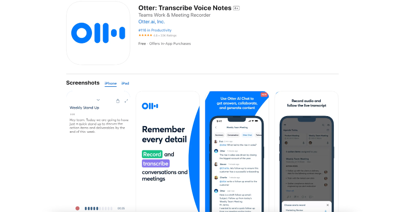Otter is a meeting assistant that makes collaboration in remote work environments much more simple. This iPhone app specializes in automated meeting notes for platforms like Zoom, Google Meet, Microsoft Teams, and more. With this AI-powered meeting assistant, you can effortlessly record audio, generate notes, capture slides, receive meeting summaries, and more.
