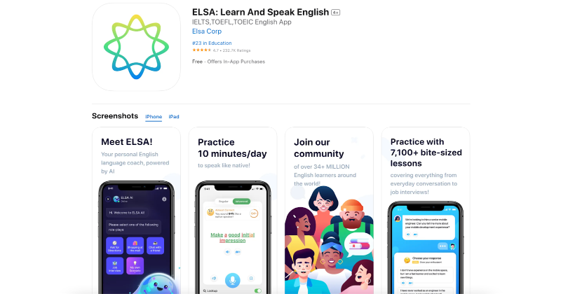 ELSA, or the English Language Speech Assistant, is an intuitive English learning app designed to elevate your pronunciation skills through sophisticated artificial intelligence and exclusive voice recognition capabilities.