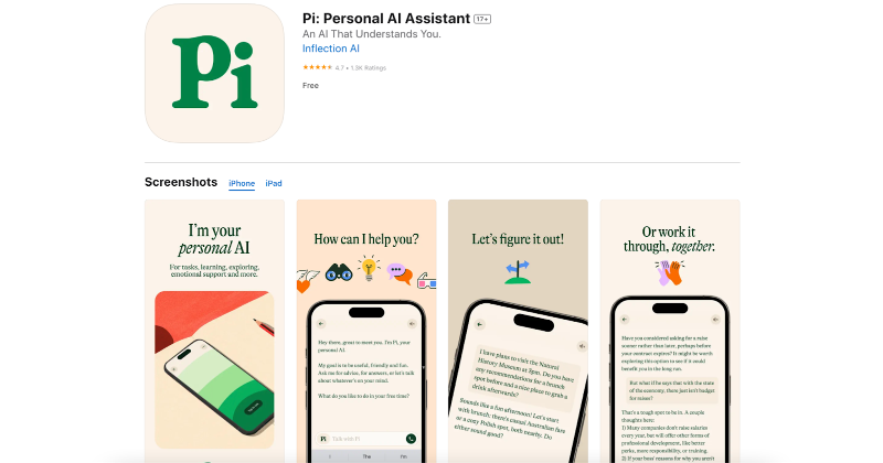 Pi offers its app and web application for free.