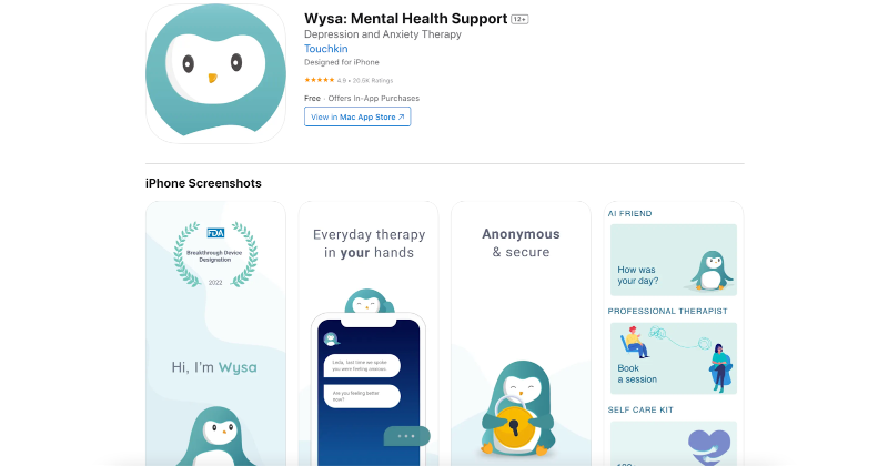 Wysa is a mental health app that offers empathetic support through research-backed techniques like CBT and DBT. This emotionally intelligent chatbot provides an anonymous space to address depression, stress, anxiety, and more. You can vent, practice therapeutic techniques, and access guidance from qualified professionals.