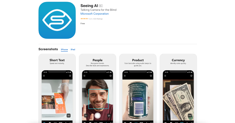 Seeing AI is a great free app designed for the blind and low-vision community, utilizing the power of AI to provide an auditory description of the visual world. Tailored with ongoing input from its users, Seeing AI offers tools for various daily tasks, such as reading a short text, capturing documents, scanning products with barcode recognition, saving faces for recognition, identifying currency notes, describing scenes, exploring unfamiliar environments through Audio Augmented Reality, enabling indoor navigation, recognizing colors, reading handwritten text, and assessing light levels. Additionally, the app integrates with other applications, allowing users to describe images from various sources, and it evolves continuously with community feedback and advancements in AI research.