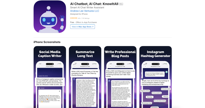 Whether it's writing code, summarizing articles, generating blog posts, crafting social media captions, brainstorming business ideas, translating text into different languages, or even assisting with math problems, KnowItAll can help.