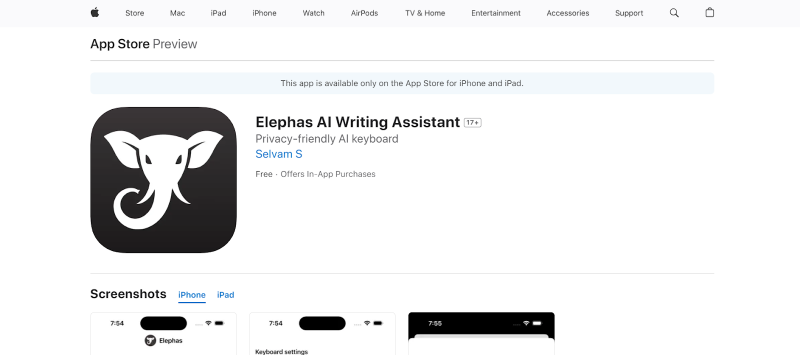 You can download the Elephas AI keyboard for iPhone and iPad directly from the Elephas website or from Elephas on the iOS App Store