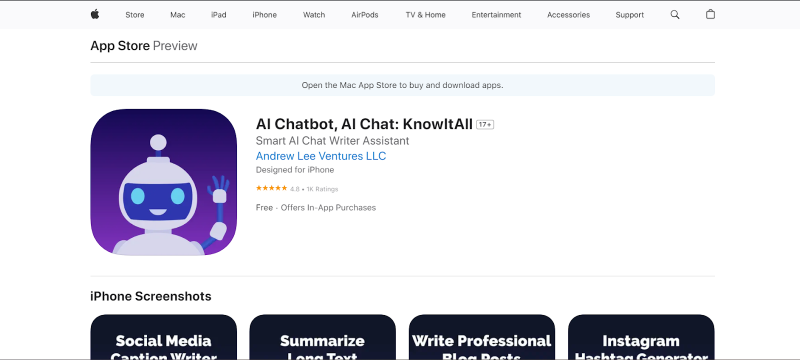 KnowItAll is your go-to iPhone app for accelerating your learning journey. AI Chatbot is here to make learning new things easy, with a 4.8 out of 5-star rating from 920 people.