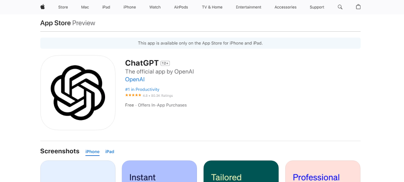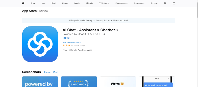 The ChatGPT app by OpenAI is your go-to AI friend for your iPhone. What distinguishes this software is its ability to sync your chat history between devices, allowing you to quickly resume discussions regardless of whatever device you're using.