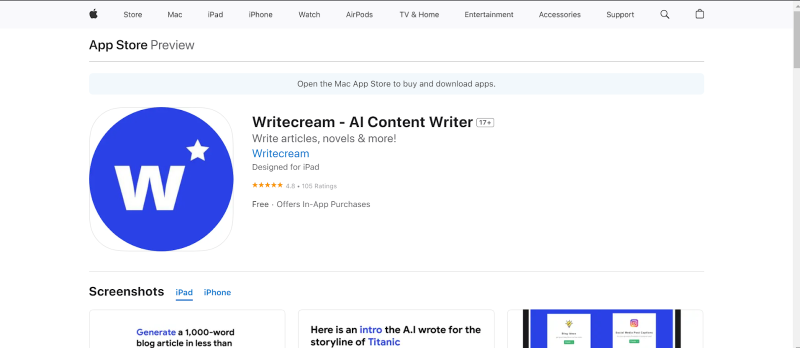 Writecream, the premier ChatGPT application, is accessible online, allowing users to leverage its capabilities seamlessly across various devices such as Mac, iPhone, iPad, and any other internet-enabled device.