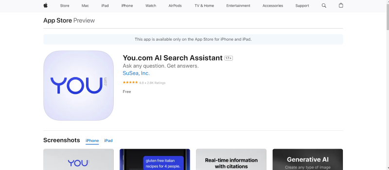 You.com stands out as the premier ChatGPT app, utilizing cutting-edge artificial intelligence and natural language processing to facilitate human-like conversations. Say goodbye to traditional search frustrations, and let You.com be your go-to solution for seamless, efficient information retrieval. Life's questions are met with instant, relevant responses, making You.com the epitome of a conversational AI companion tailored to your needs. Experience the future of search with You.com – where questions meet answers effortlessly.