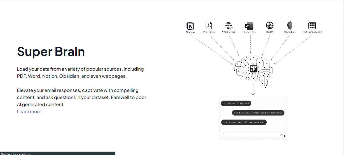 - Comes up Super Brain feature where you can load your own data and "chat" with your documents.