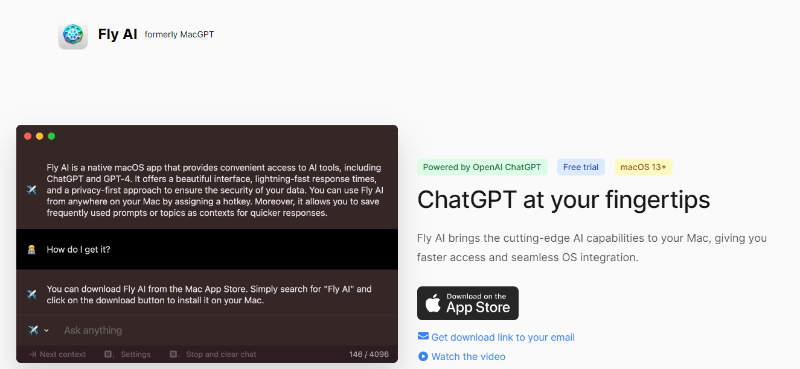 Fly AI is a fast and lightweight native Mac app, ensuring instant access without the need for a web browser.