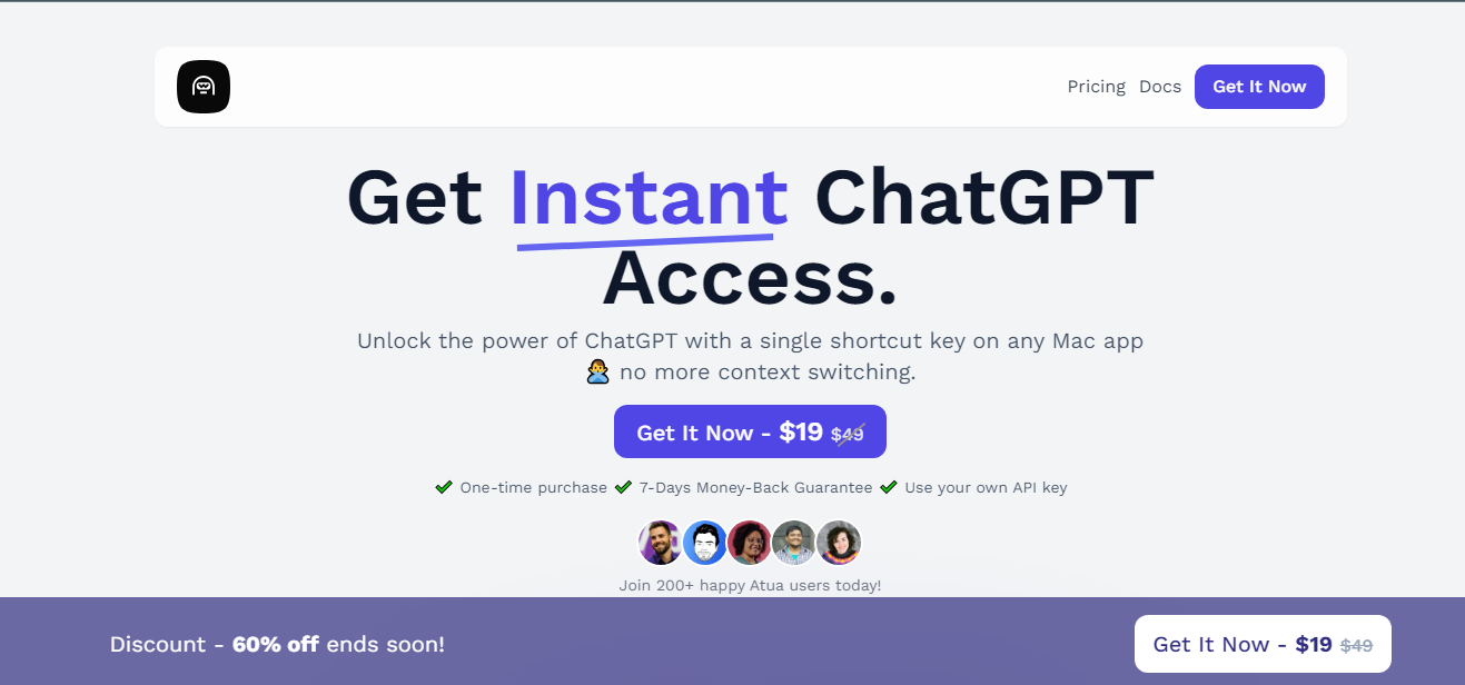 Atua helps to gain immediate access to ChatGPT's capabilities with a single keystroke on any Mac application. Say goodbye to constant context switching and effortlessly harness the potential of ChatGPT.