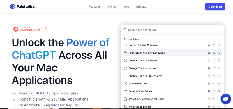 You can harness the Potential of ChatGPT Throughout Your Mac Apps like PaletteBrain. It’ll Enhance Your Workflow Efficiency and Amplify Your Productivity. Plus it also elevates your coding speed and precision, expedites information retrieval, and supercharges your productivity effortlessly.