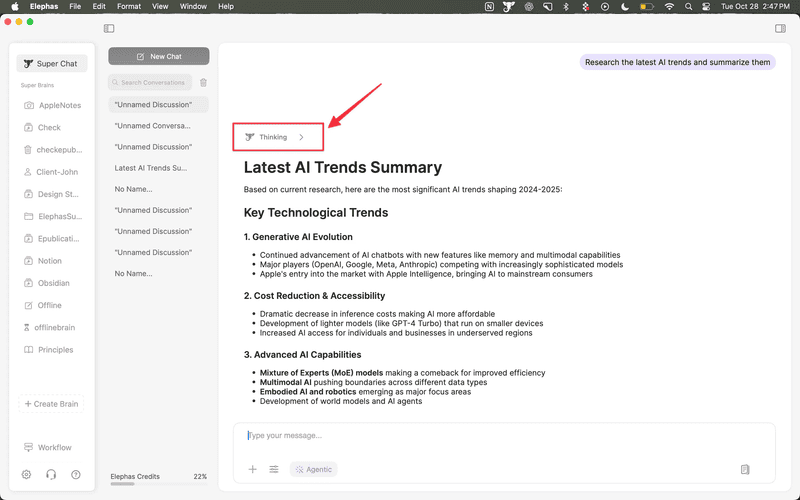 Turn on Agentic Mode to let Elephas truly think.