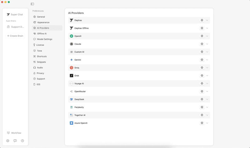Elephas integrates today’s most advanced AI systems: