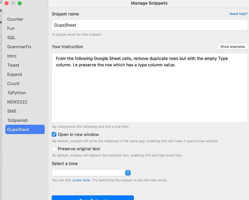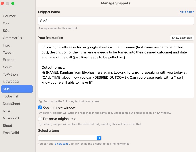 Elephas uses GPT-3 behind the scene. I used a feature in Elephas called "Snippets" that lets you extend it to your own custom tasks.
