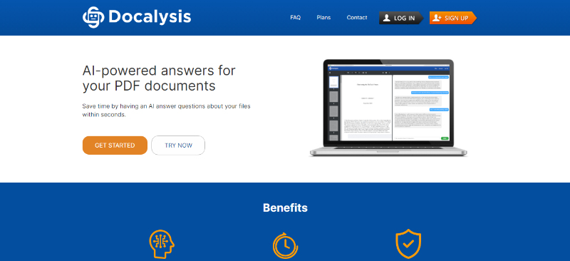 Docalysis that offers AI-powered answers for PDF documents. This service uses advanced AI technology to quickly answer questions about your files, saving you time and effort. Docalysis claims to have a vast amount of training data and knowledge, allowing it to provide accurate responses comparable to human-level intelligence.