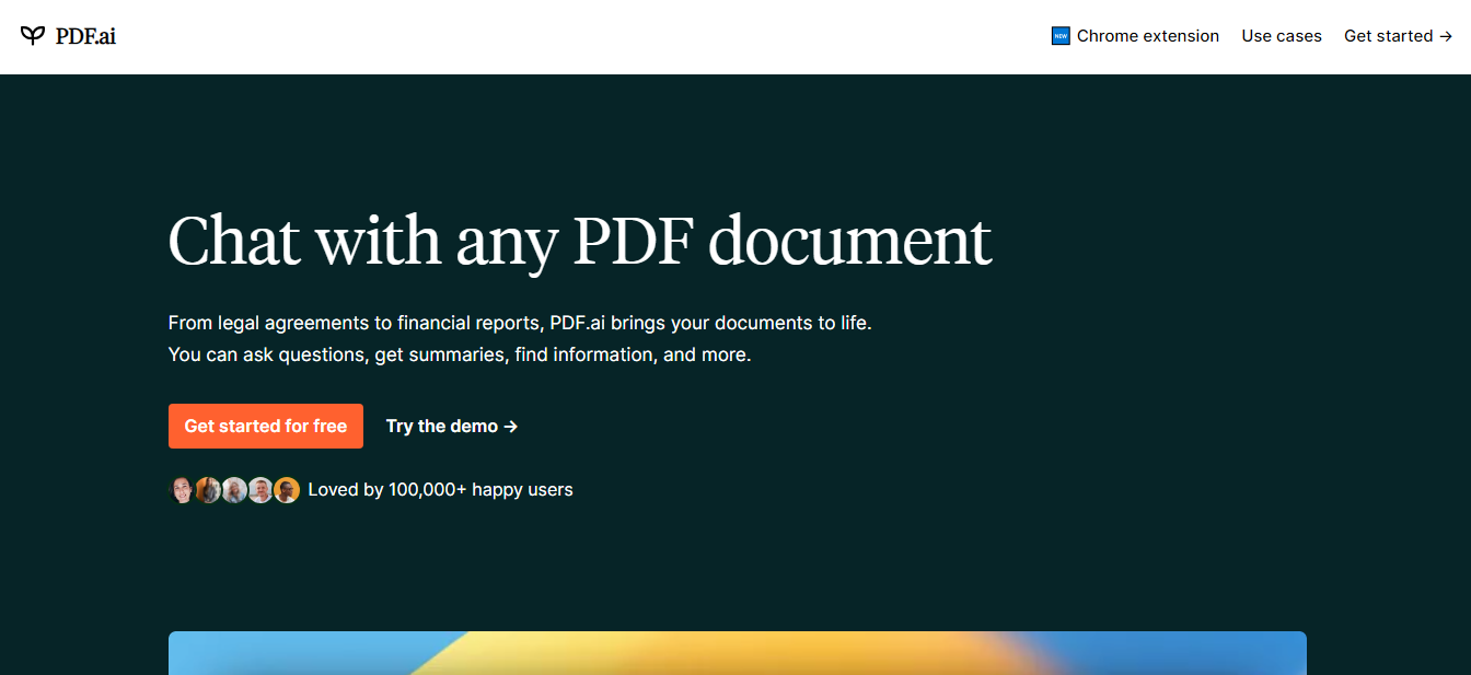 Engage in conversations with any PDF document. PDF.ai transforms various documents such as legal agreements and financial reports into interactive discussions. Whether you need to inquire about details, receive summaries, or locate specific information, PDF.ai offers these capabilities and more.