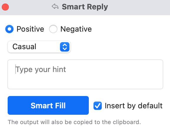 If you select the "Insert by default," the button will change to "Smart Fill," where it can automatically plug your response.