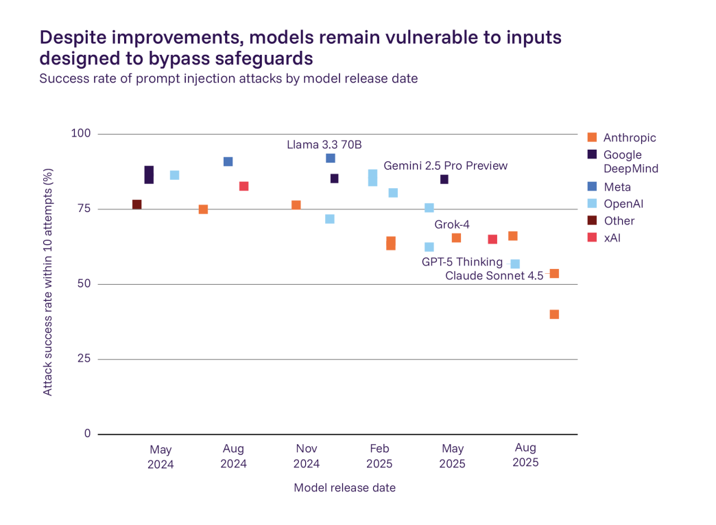 In practice, this means combining pre-deployment testing with post-deployment monitoring, input and output filters, incident response plans, and broader societal measures like media literacy programmes and DNA synthesis screening. Developers have made it harder to bypass model safeguards, but attackers still succeed at a moderately high rate.